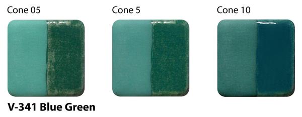 Blue Green Velvet Underglaze is a teal color that is deep aqua at cone 05, darkens at cone 5, and becomes a dark marine blue at cone 10. A clear glaze deepens the color of the underglaze significantly at any temperature.