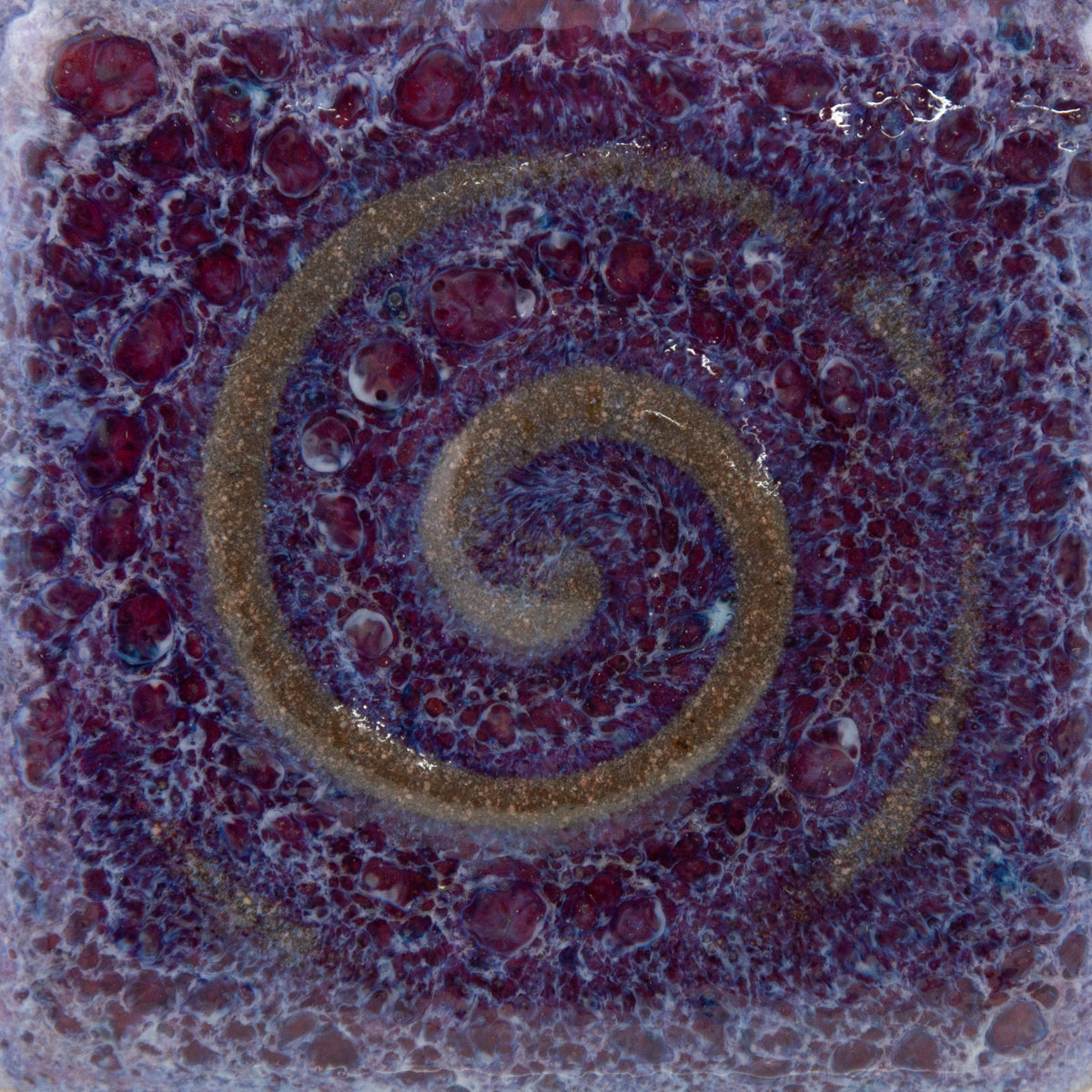 Black Cherry is a shiny deep cherry red color with lavender flecks. Apply thick for best results. Second photo is glaze on a dark clay body.