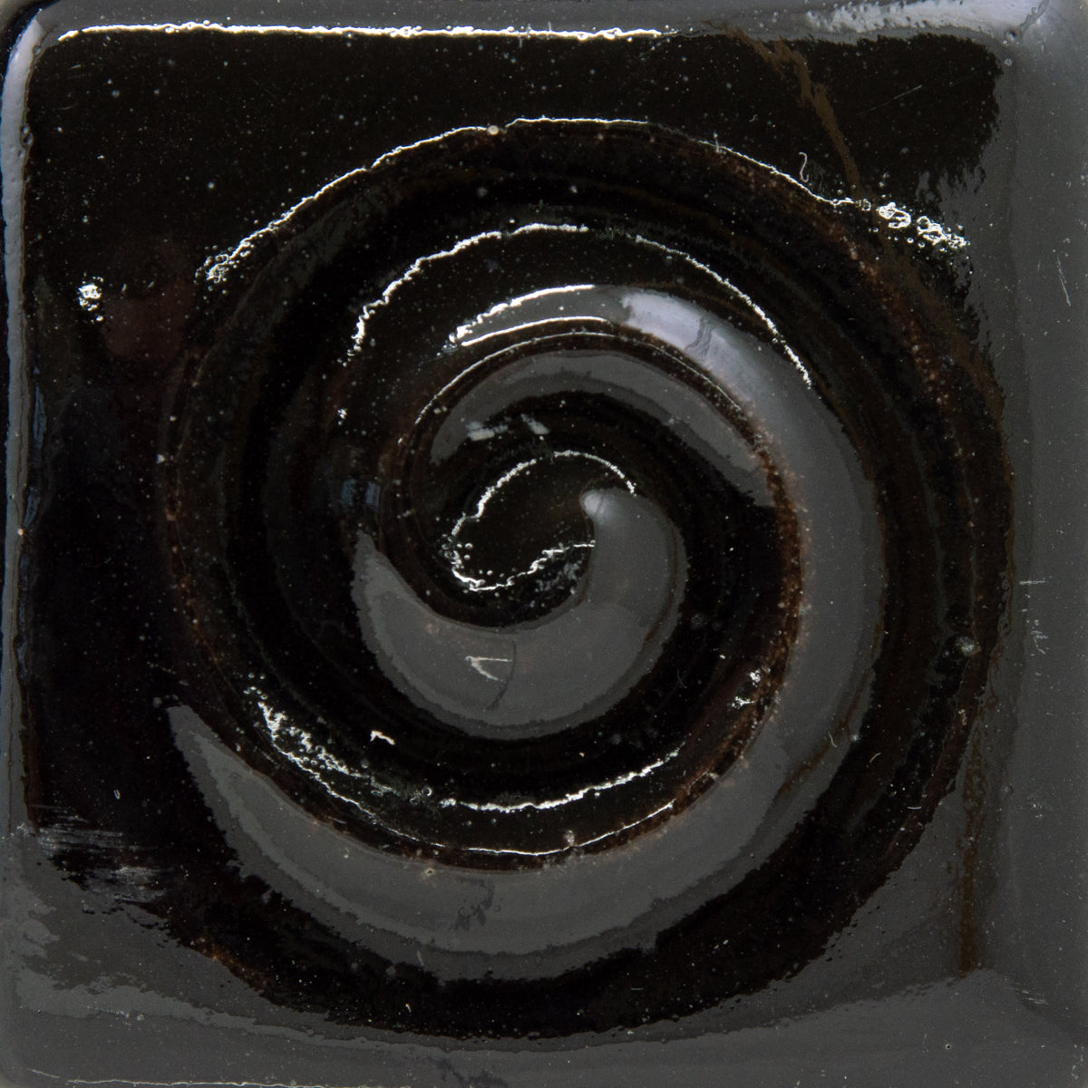 Lead-Free Cone 4-6 P Series Glaze. Glossy Black glaze. Second photo is glaze on a dark clay body.