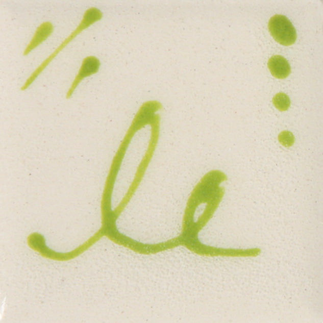 Cone 06 oxidation (large photo): Use this versatile product to create bright green fine detail with lines, dots, and letters.
