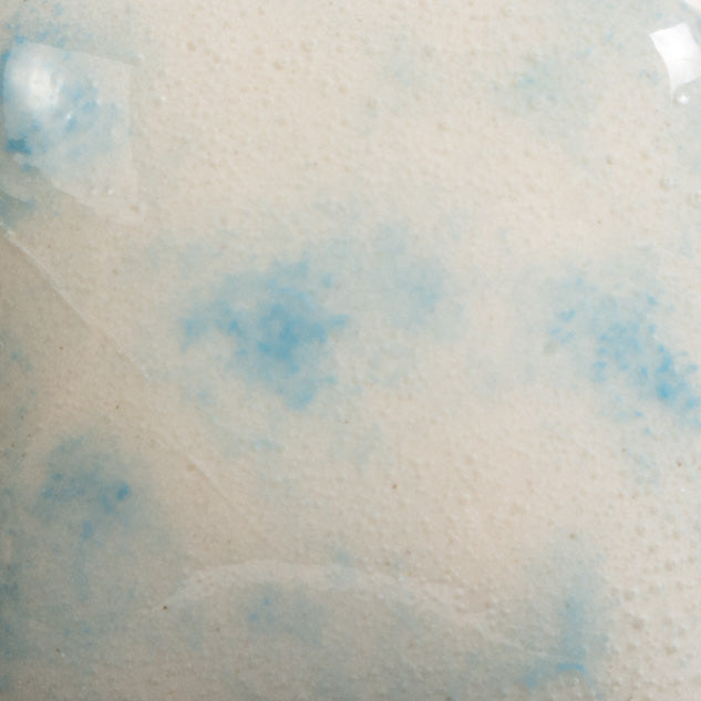 Cone 06 oxidation (large photo): Dutch Enamelware is an opaque white base glaze with bright blue crystals.