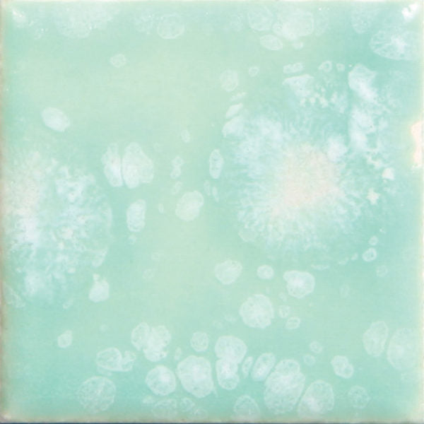 Cone 06 oxidation (large photo): Seafoam is a translucent turquoise base glaze with a variety of white crystals that bloom.