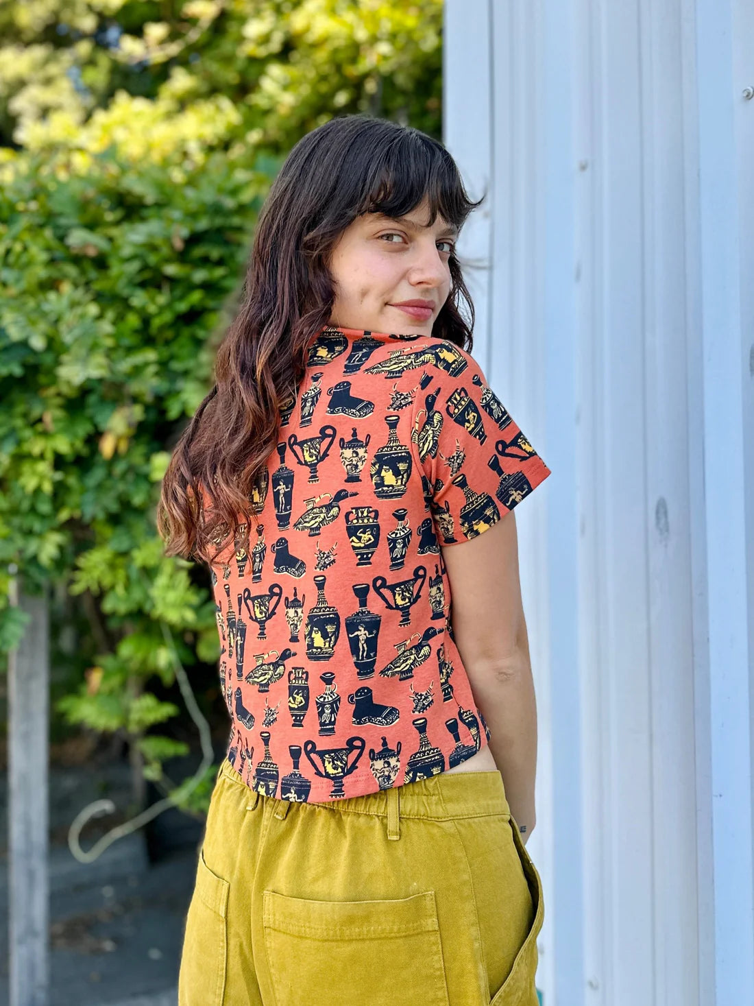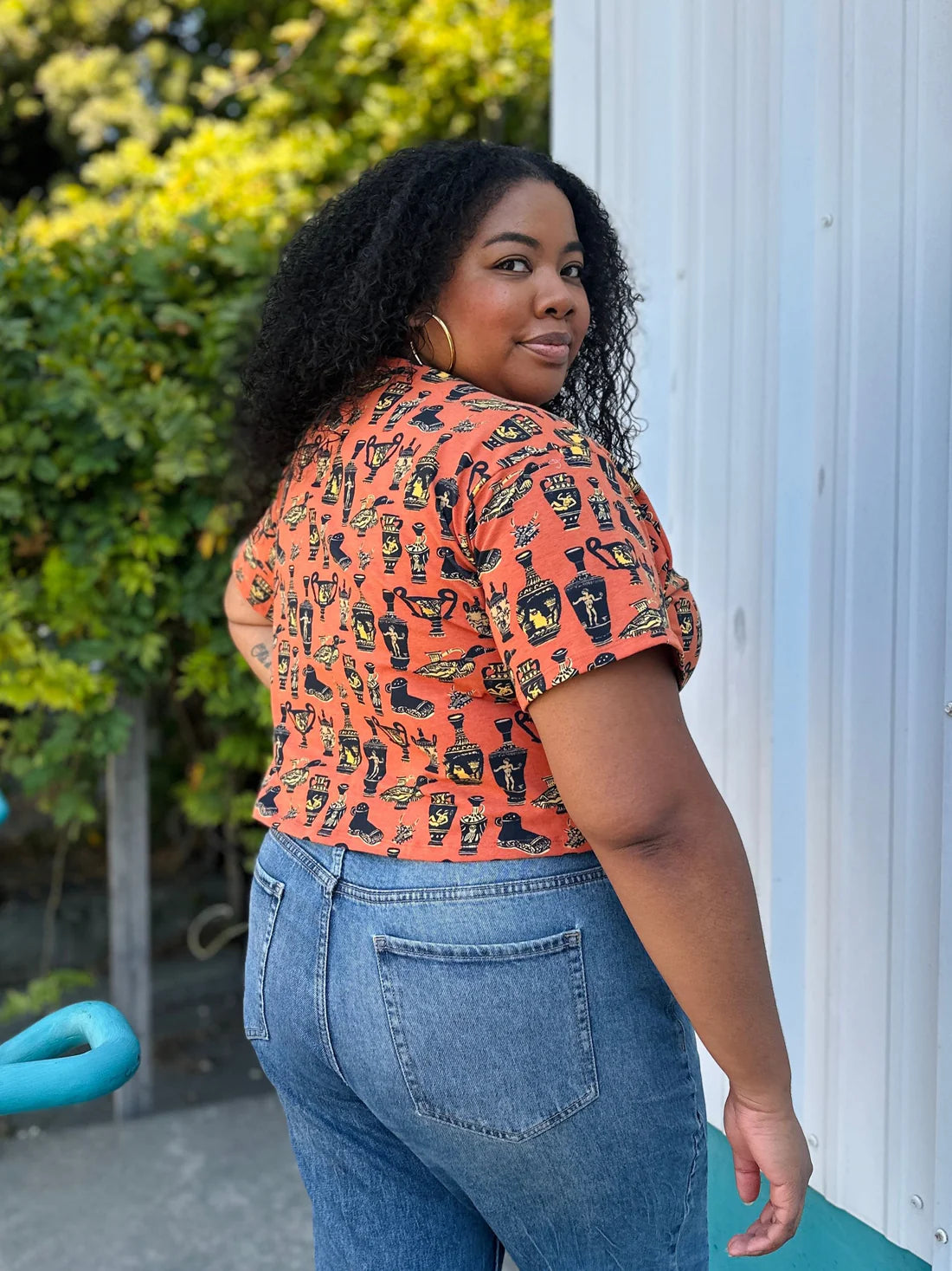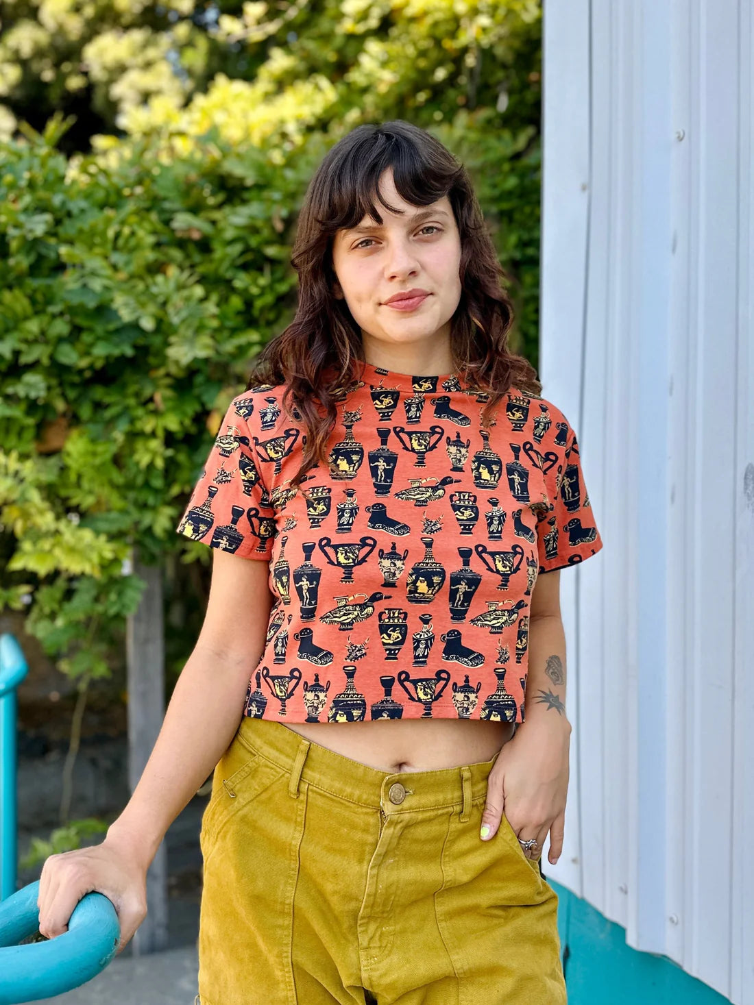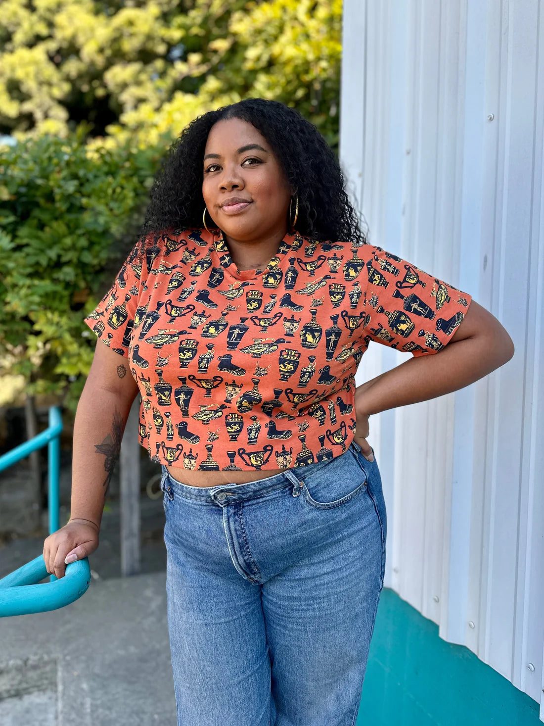 The Crop Top features a classic crew neckline, short sleeves, and a cropped, boxy silhouette. Made from soft stretch jersey, it's the perfect casual staple to toss on with joggers, business pants, or any high-waisted bottoms you have in your closet at home.