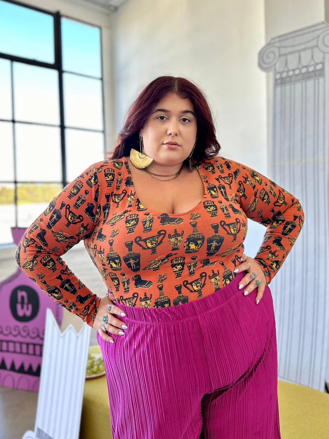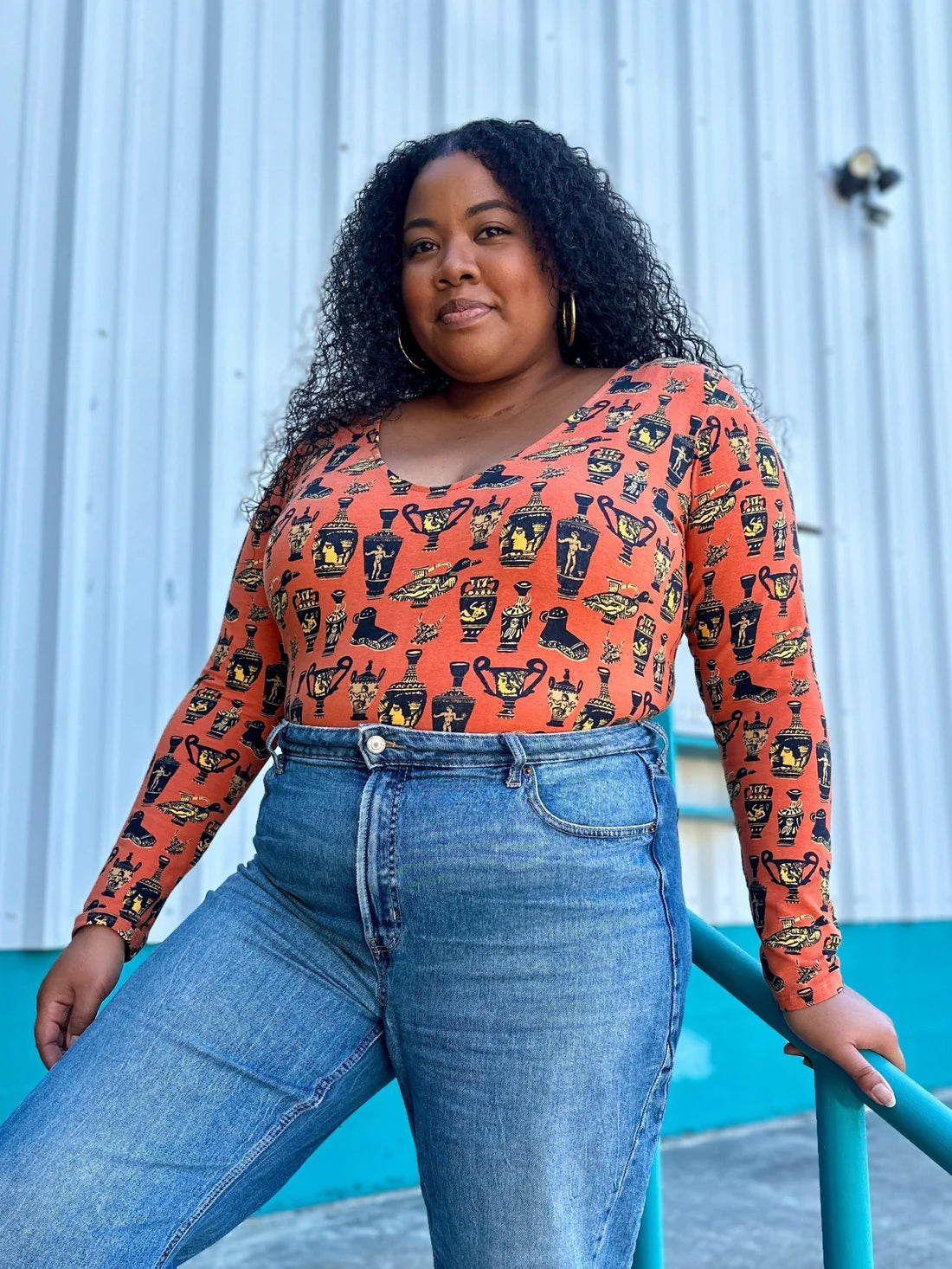 The long sleeve bodysuit is the layering piece every closet needs. This bodysuit is made from soft stretch jersey and features a deep V-neck, long sleeves, and full coverage bottom.