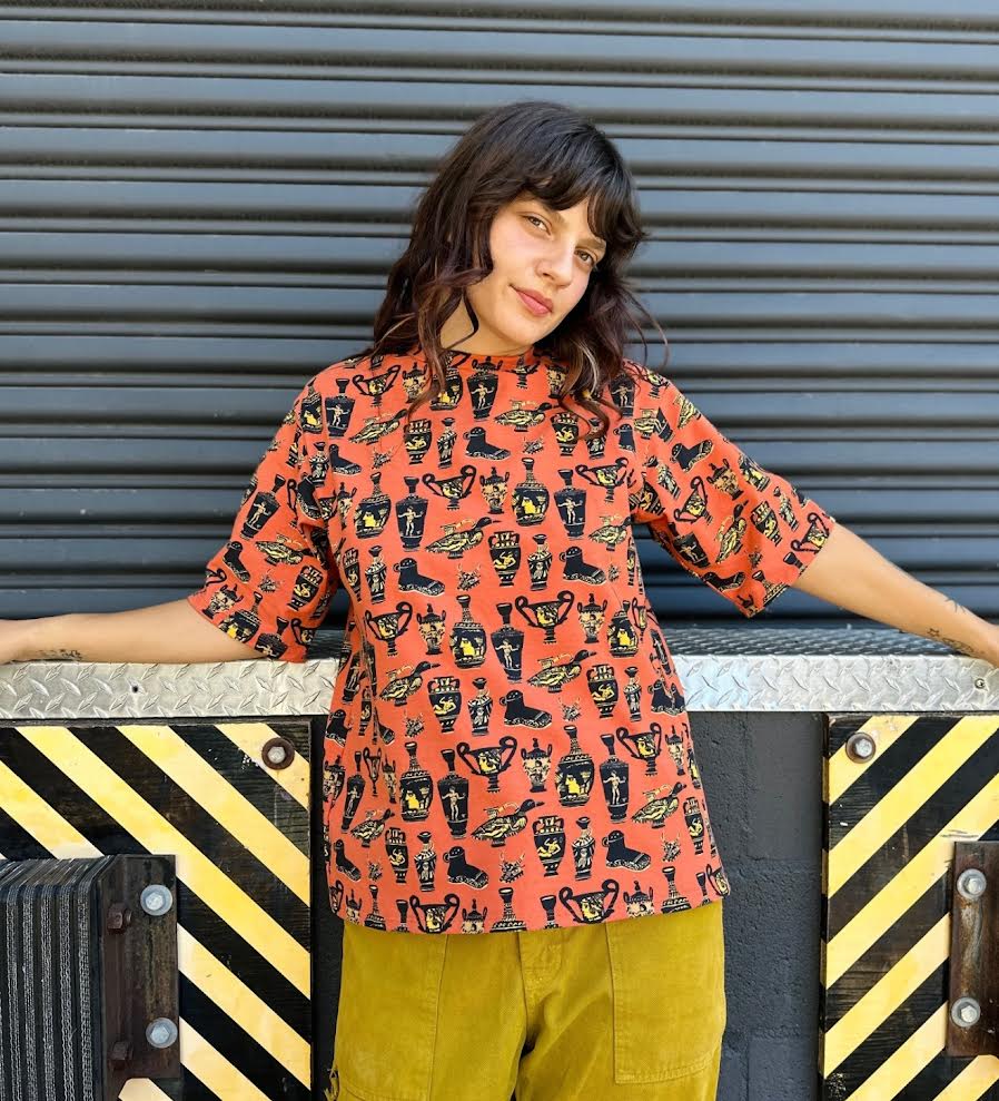 Your essential oversized, slouchy tee. Easily dress it up or down. Cut from our ultra-soft stretch jersey and patterned for a boxier, roomy silhouette with slightly dropped shoulders and elbow-length sleeves. Hits at the hip so you can play with it styled half-tucked in or worn oversized.