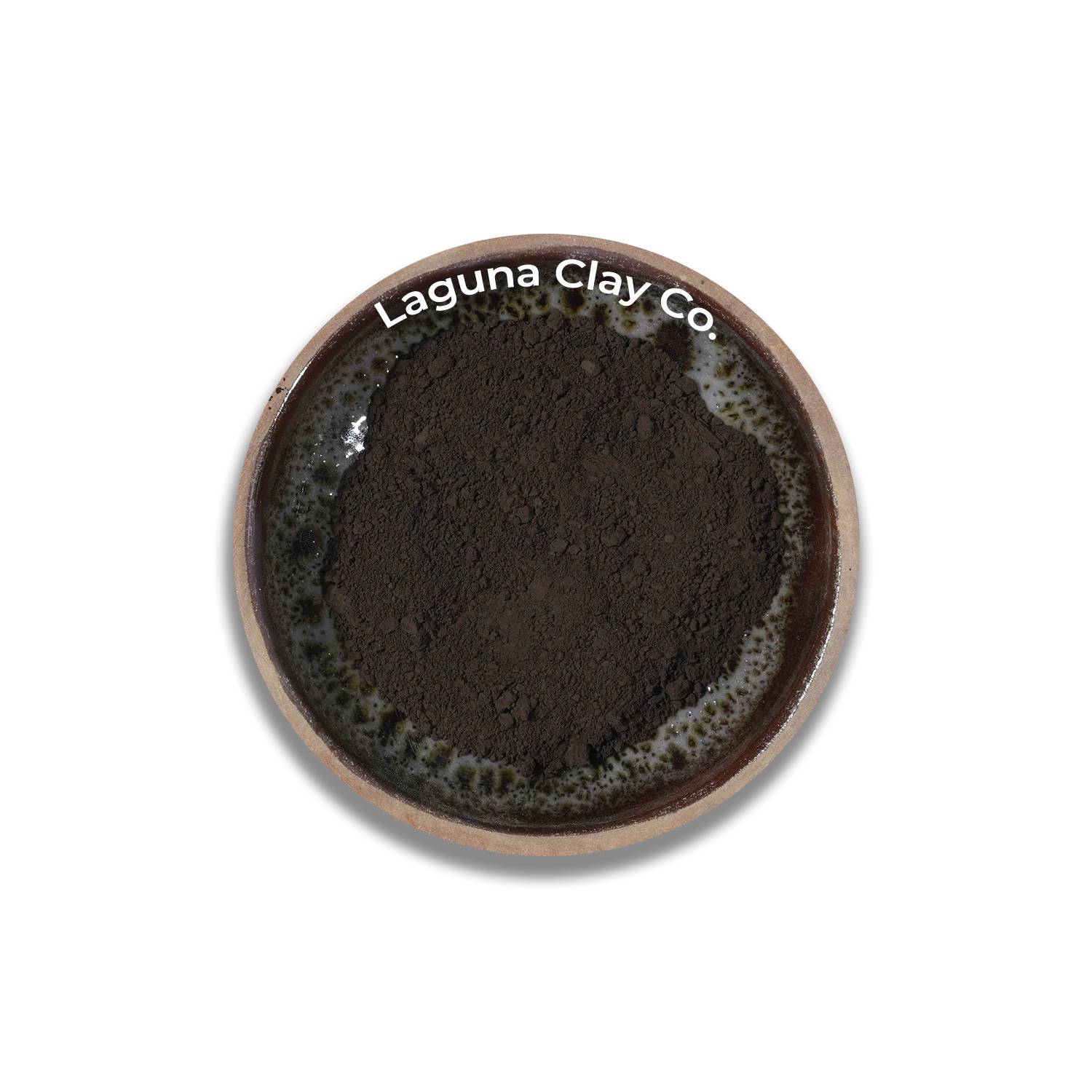 A black powder which gives red, brown, purple or black tones to clay bodies and glazes. A strong flux when added in large amounts to clay bodies. A black 40-60 mesh material often used for speckling in clay and glazes.
